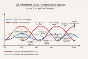 Det som är unikt för vår tid är att både 50-årscykelns och 75-årscykelns spänningar sammanfaller för första gången, vilket skulle betyda att vår tid är exceptionell och att de motsättningar som finns i det amerikanska samhället. Utan att vara deterministisk så är det en intressant historiebeskrivning som har sina poänger.